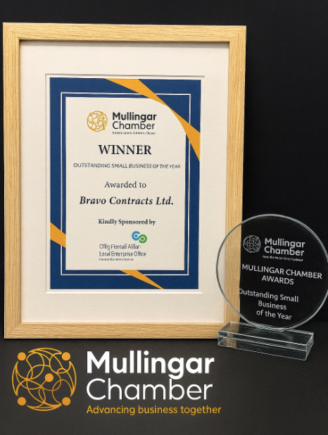 The Mullingar Chamber Award for Outstanding Small Business of the Year celebrates a local company that exemplifies excellence, resilience, and meaningful contribution to the community. This recognition highlights a business that not only delivers exceptional products or services, but also demonstrates strong leadership, innovation, and commitment to supporting the economic growth of the Mullingar region. It honours a company that stands as a model of professionalism and integrity—one that invests in its people, uplifts its community, and consistently strives for higher standards. Epitomizing the spirit of enterprise, the award reflects a business that not only succeeds, but inspires others through its dedication, vision, and positive impact on Mullingar's vibrant business landscape.